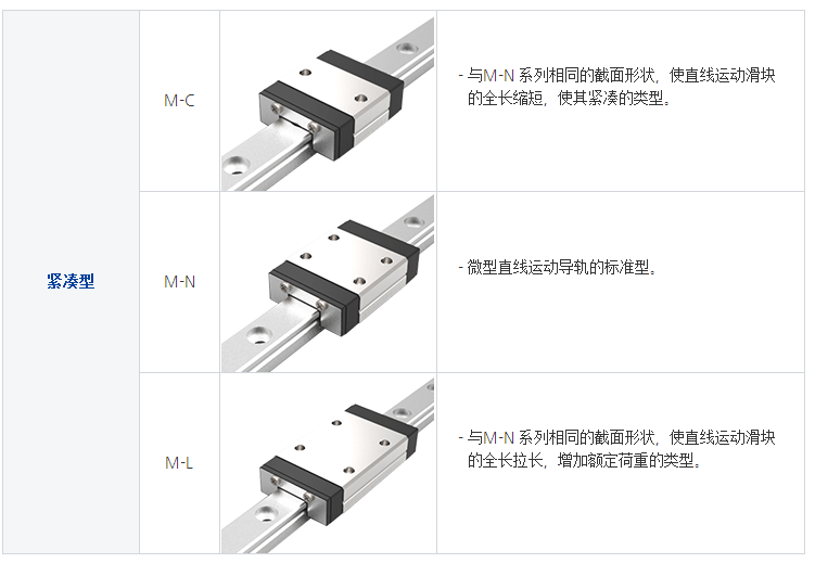 體積小、輕量化,滑塊主體的一部分采用了樹(shù)脂材料,重量減少約20%,特別適合小型化設(shè)備使用。不銹鋼材質(zhì)之線性滑軌,包含滑塊、滑軌及其它金屬配件如鋼珠、保持器等,皆使用不銹鋼材質(zhì),具備防銹的特性。采用哥德型四點(diǎn)接觸設(shè)計(jì),可承受各方向負(fù)荷,具備剛性強(qiáng),精度高等特性。有鋼珠保持器設(shè)計(jì),在精度允許下具備互換性。