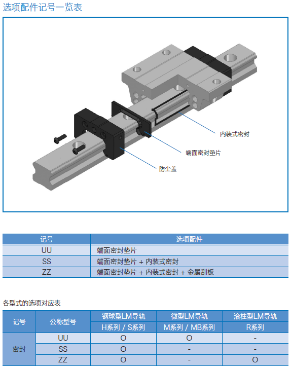 為了極大發(fā)揮直線導軌的特性和性能,防止外部的異物侵入直線運動系統(tǒng)內(nèi)部,導致異常磨損并縮短使用壽命。預料可能會有粉塵及異物侵入時,有必要選擇有效的密封裝置或防塵裝置。